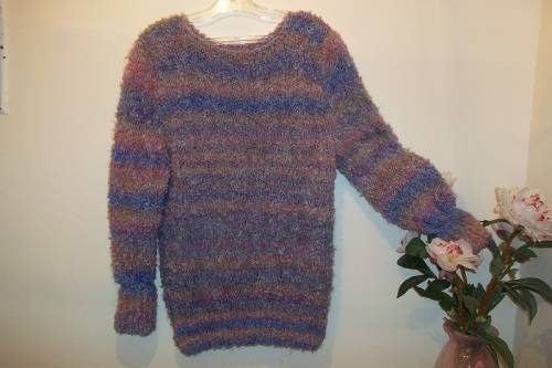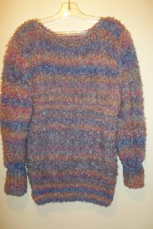 Multicoloured Boatneck Vintage Style Hand Knitted Sweater / Jersey - Size Large