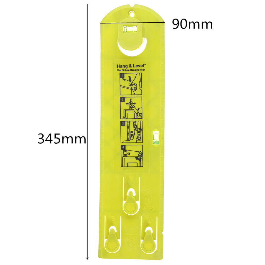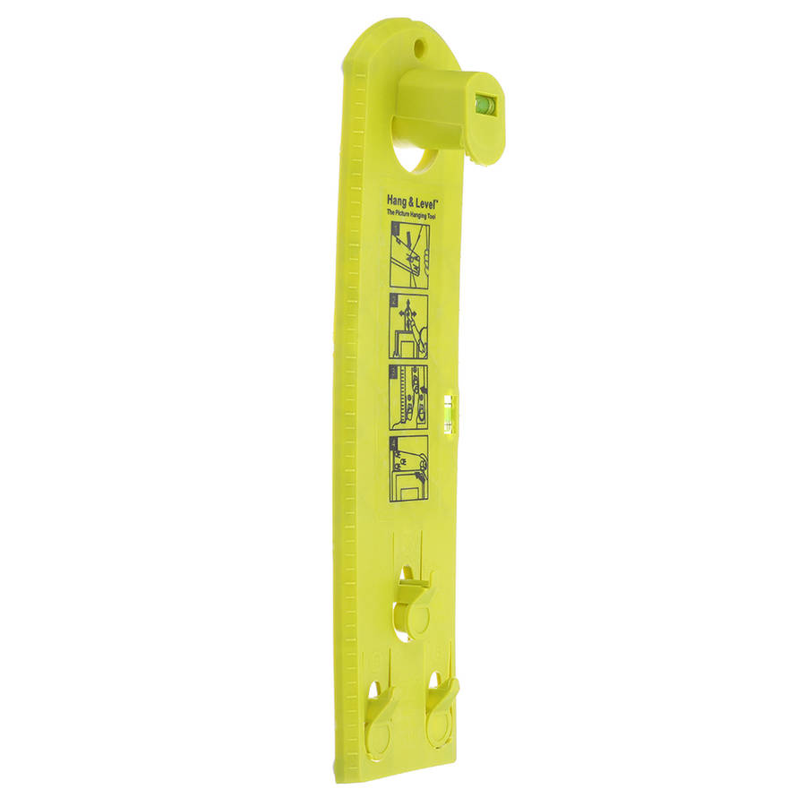 - Works with all types of hanging hardware and wall materials. - No slip handle with two level bubble With built-in levels to ensure pictures are straight, ruler on both sides; - Marks exactly where the nail goes, ideal for hanging pictures, clocks, mirrors, etc. - Made of premium ABS materials, durable to use, exquisite workmanship provides long service life. - Hang wire on 1 or 2 nails. Package Included: