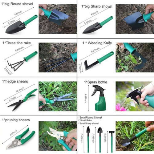Multifunctional Stainless Steel 10-Piece Garden Tool Set Green