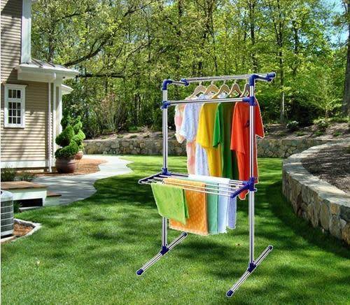 | This deluxe multilayer stainless steel clothes hanger will keep your clothes organized, as summer is approaching, it can be used as clothes dryer as well to save money on electricity. This multifunctional clothes rack will hold a large load of clothes with its strong stainless steel metal frame and two cross bars at the bottom to prevent it from swaying.