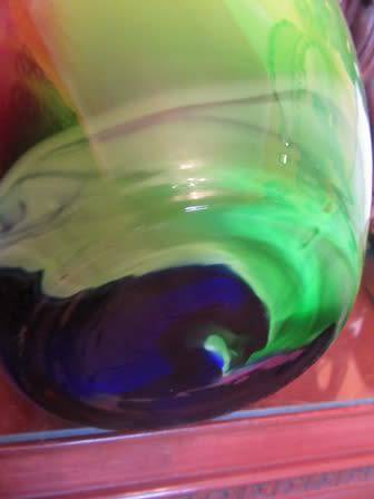 Large Statement Murano hand blown Vase in swirls of orange, green and blue the vase stands 37cm tall and weights 4.75kg.In Mint condition.