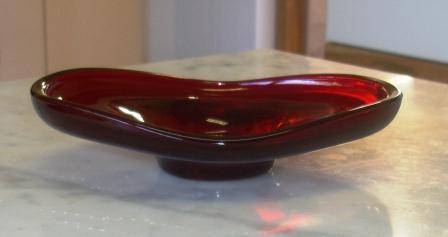 Murano Bowl. Red. Approx. 19cm L x 13cm W x 4cm H