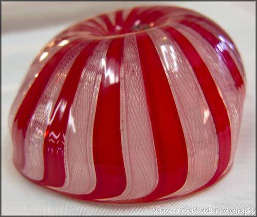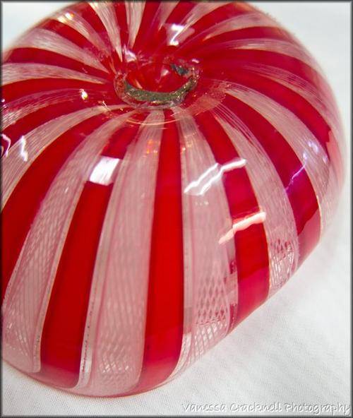 This MURANO GLASS BOWL - RED & WHITE LATTICINO WORK - EXQUISITE DETAIL would make a lovely addition to your Murano Glass collection.