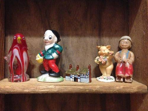 These ornaments depicted are miniature they include a miniature porcelain house, disney dwarf figurine/ murano glass penguin / miniature pig ornament / very old miniature boy (broken) some sort of plastic / a rooster / pottery basket / and unknown pottery bowl most ornaments approximate 6- 8 cm in height.