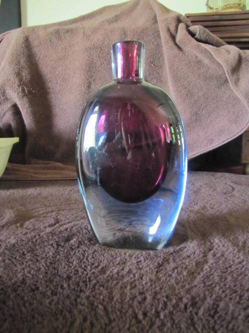 Exquisite piece. A vase within a vase. The inside colour is a cranberry purple colour. Very heavy piece.