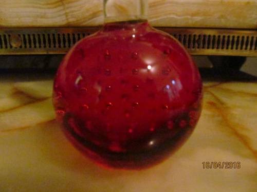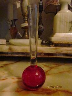 MURANO GLASS BUD VASE - Ruby Red with Controlled Bubbles and WHITE TOP PART