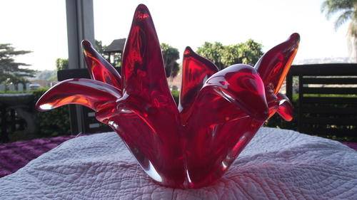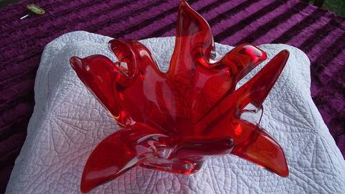 MURANO.** WOW** A BEAUTIFUL FIRE RED LARGE CENTER PIECE. 28 X 14CM HIGH