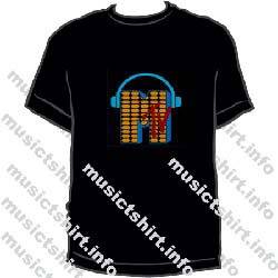 Music t-shirt, formed by a T-shirt and a EL luminous panel, are widely used at all kinds of public occasions like evening party, concert, bar, disco dancing, dance hall, sports competition etc.