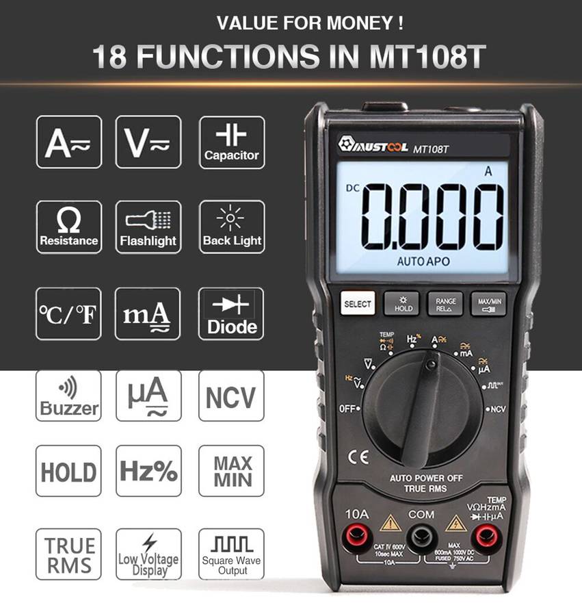 The MUSTOOL MT108T is a pocket-sized 6000 counts automatic digital instrument.