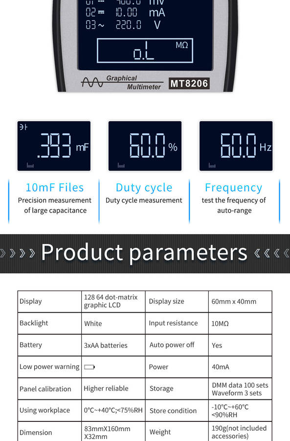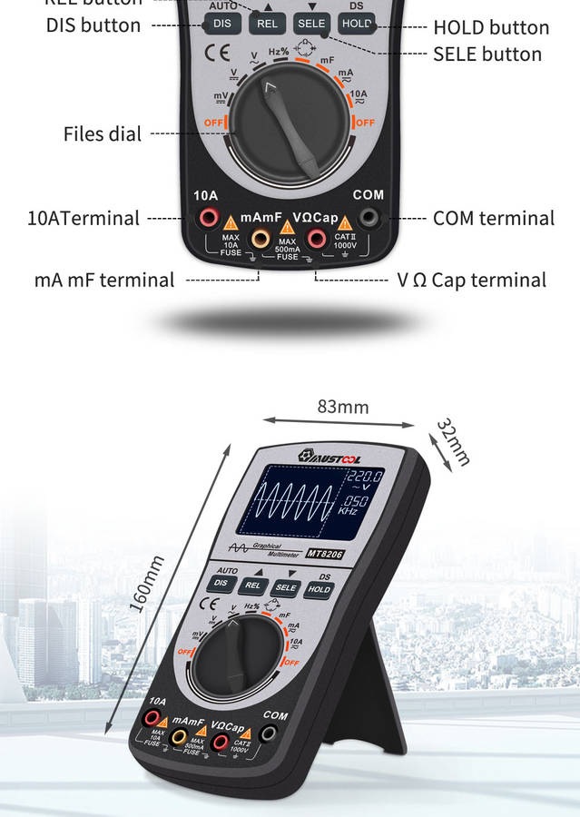 11.Featuring DC/AC voltage/current, resistance,capacitance/mF (large capacitance)