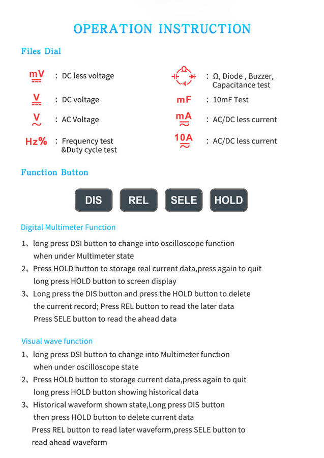 6.Capable of holding waveform and data during measurement,easy to view and analyze