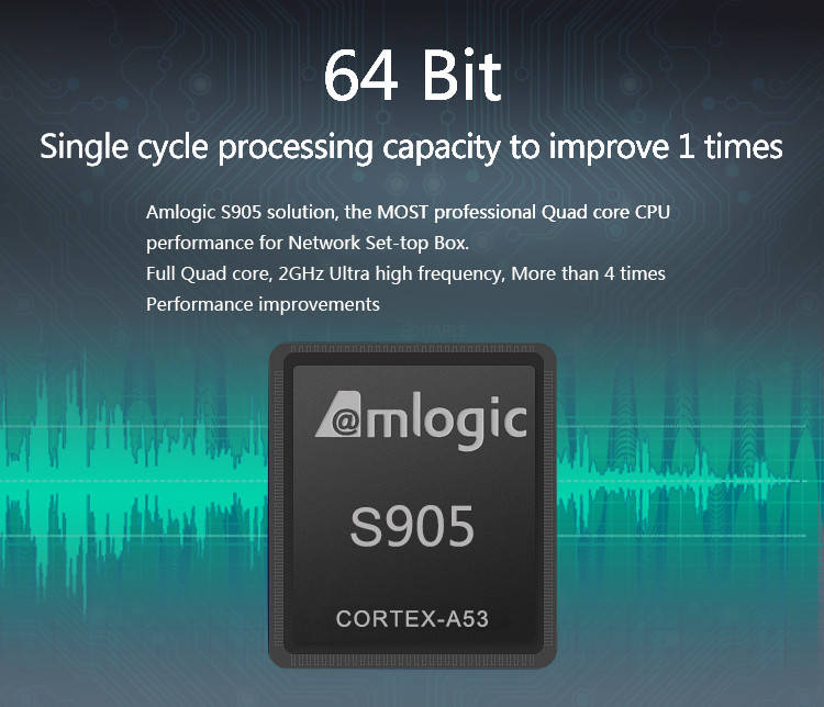 | CPU | Amlogic S905 Cortex A53 Processor 2.0GHz |