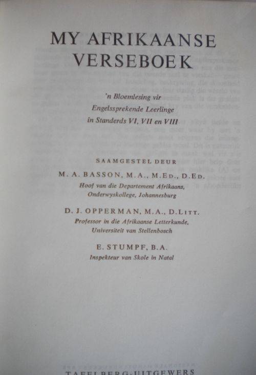 My Afrikaanse verseboek. Boek is in 'n swak kondisie met baie potlood aantekeninge.