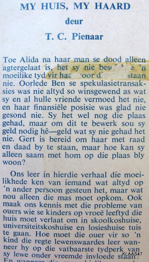 My Huis, My Haard - T C Pienaar - Hardeband 1962