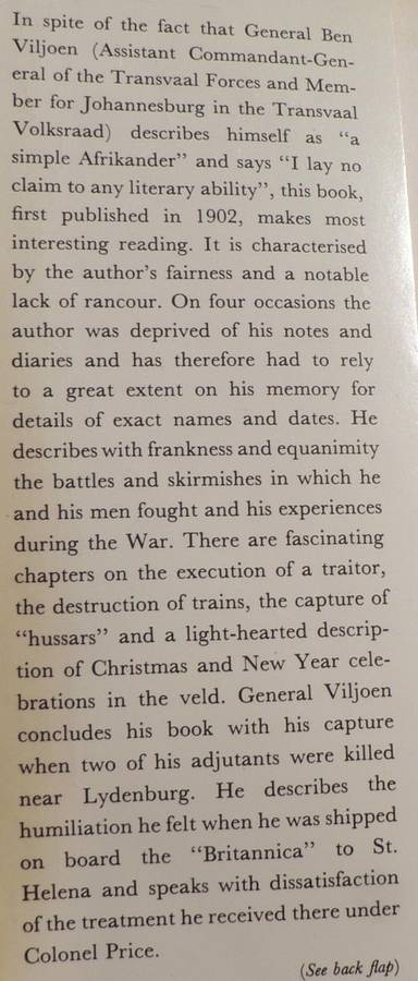 331 PAGES, SOME B/W PHOTOS, MAP PLATES, THE PERSONAL REMINISCENCES OF GENERAL BEN VILJOEN. AFRICANA COLLECTEANA REPRINT OF THE 1902 ORIGINAL. LIMITED EDITION. 214/1000