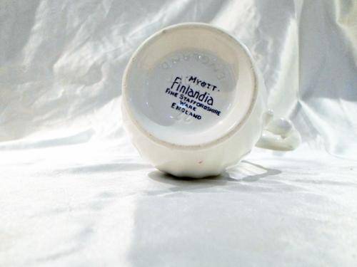 Myott Finlandia porcelain milk jug 11cms high and diameter of the jug is 9cms x 7cms. Very nice, a hand engraved masterpiece. Bid now!!