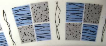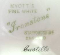 An oval 'Ironstone' platter by Myott, decorated with the retro Castille pattern. No chips or cracks but there are utensil marks from use. (There are also marks underneath but these are stilt marks from the firing process.) Width 310 mm.