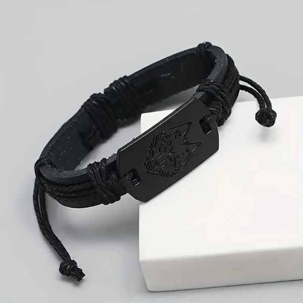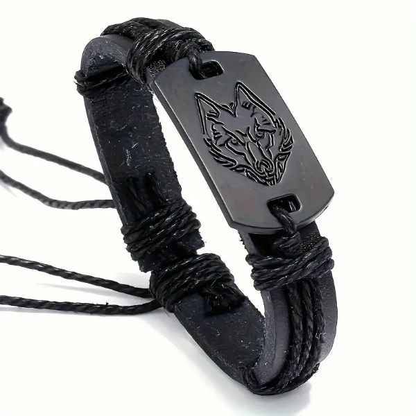 What's in the box : 1 x Mystical & Cool Rugged Sigma Lone Wolf Leather Bracelet for Men