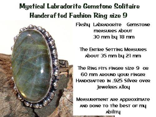 Mystical Flashy Labradorite Solitaire Handcrafted Fashion Ring size 9