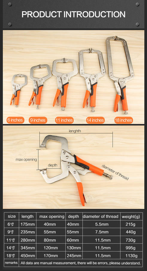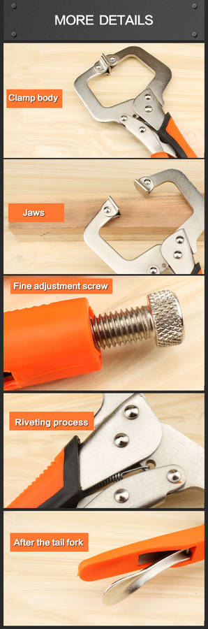 Jaws using high-quality high-carbon steel, heat treatment, strong and tough. Clamp body with high-quality carbon steel sheet stamping, anti-tension is not easy to deformation. The use of screw fine-tuning mechanism, adjustable clamping size. Clamp tight, easy to release.