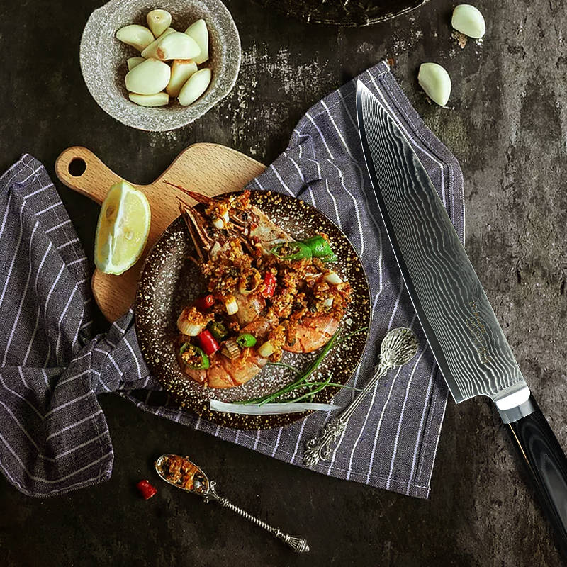 Package weight: 0.41 kg Description : MYVIT Damascus Knives 8" Chef Knife Japanese Kitchen Knife Damascus VG10 67 Layer Stainless Steel Knives Ultra Sharp Micarta Handle