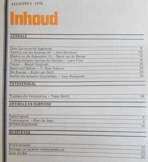 TROMPIE JAARGANG 4 NR 8 VAN AUGUSTUS 1976 NOG IN GOEIE TOESTAND MET OUD-SPRINGBOK CAREL FOURIE OP VOORBLAD EN KEVIN DE KLERK OP DIE AGTERBLAD - DIS NOU SKAARS EN VERSAMELBAAR! VERWYS FOTOS POSGELD SAL R40 WEES (EN SOU JY DIE BOLLIE WAT EK OOK GELYS HET WEN DAN IS DAAR NIE EKSTRA POSGELD NIE!)