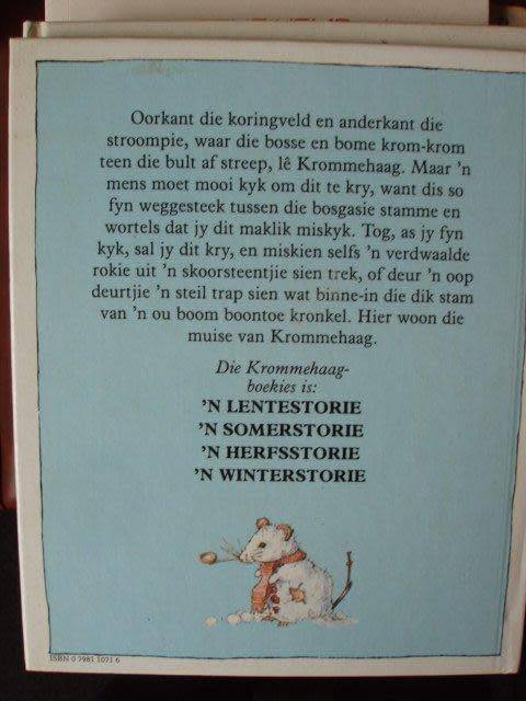 Beskrywing: 'n Versameling van vier boekies met vier verhale (die vier seisoene) oor die muise van Krommehaag, pragtige kleur illustrasies, sien ook foto's vir meer inligting.
