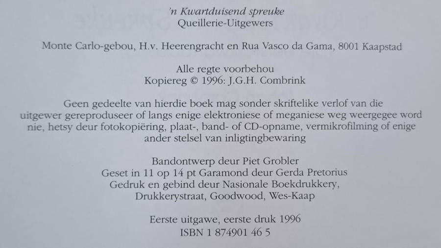 N kwartduisend spreuke - Johan Combrink (paperback)