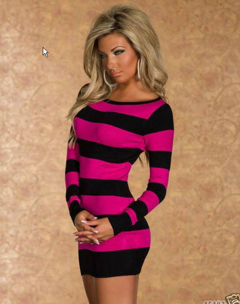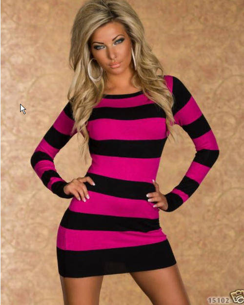 N101 sexy striped long blouse/dress, black & pink,,Free size, ize fit to size s/m, pink/black