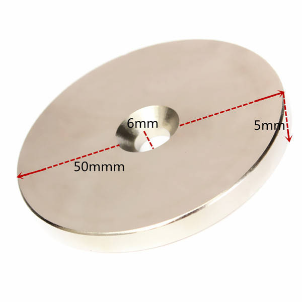 N52 50mmx5mm Countersunk Ring Magnet Disc Hole 6mm Rare Earth Neodymium MagnetFeatures: