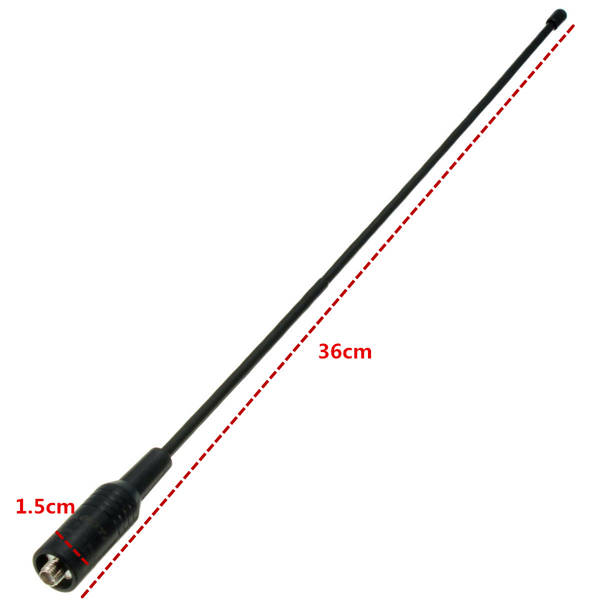 Package weight: 0.04 kg Description : High Gain Double Segment Inter-phone Radio Antenna For Baofeng UV-5R KG-UVD1 1. Brand new and high quality 2. Gain : 2.15dB 3. Resistors : 50OHM 4. Length : 36CM 5. Frequencies : 144/430MHZ 6. Maximum power : 10 WATTS 7. Suit for Baofeng UV-5R, KG-UVD1 walkie talkie. Package includes : 1 x Radio Antenna Details pictures :