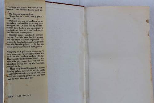 Hardeband met omslag-eerste uitgawe eerste druk 1978.Skutblad papier verlies.Boek erg rak geskaaf,veral onderkant,maar goed gebind.Omslag klein skeurtjie rug bo en vlekke op agterkant(sien foto)
