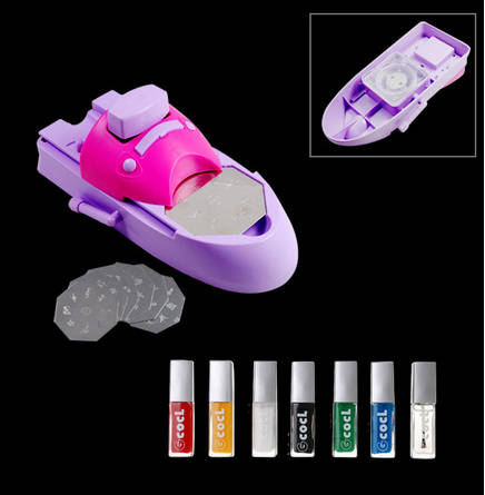 New Amis nail art stamping machine plus instruction leaflet, 5 disks and 7 nail colors. Now you have the opportunity to have beautiful looking nails (hand and feet) without having to visit a salon. The nail art machine would make a great gift, too! This super low price is offered to Bid or Buy customers and for a limited period only!