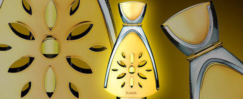 Jasmine, rose and saffron provide the fragrance its floral spicy ambience, which mellows into a base of infused with cedar