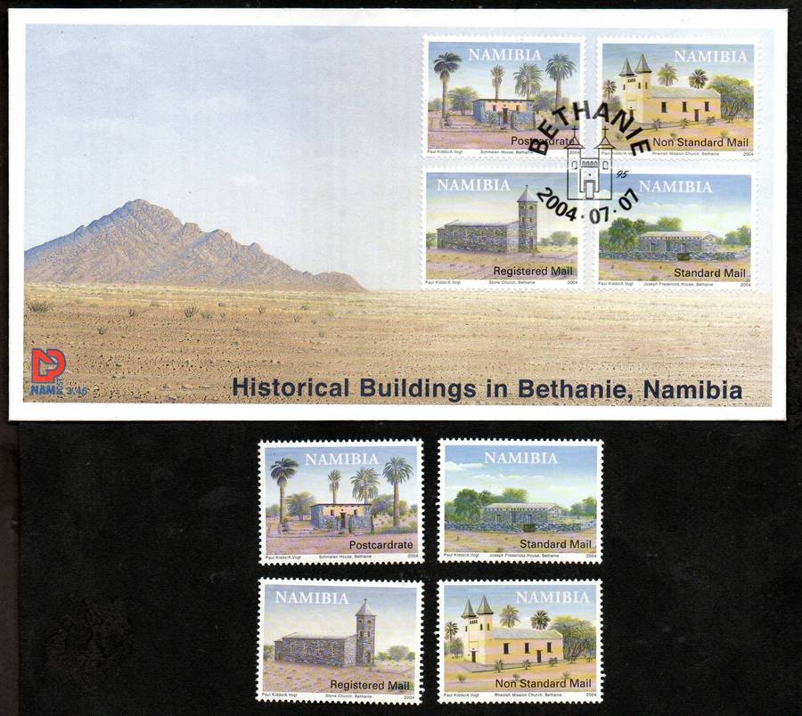 NAMIBIA 2004 HISTORICAL BUILDINGS IN BETHANY UMM SET OF (X4) + FIRST DAY COVER.