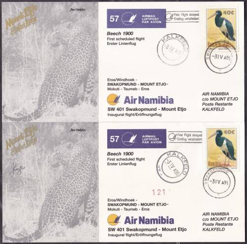 NAMIBIA - AIR NAMIBIA, 2 X FLIGHT FDC'S NO.57 - 1 X UNSIGNED & 1 X SIGNED!!!!!