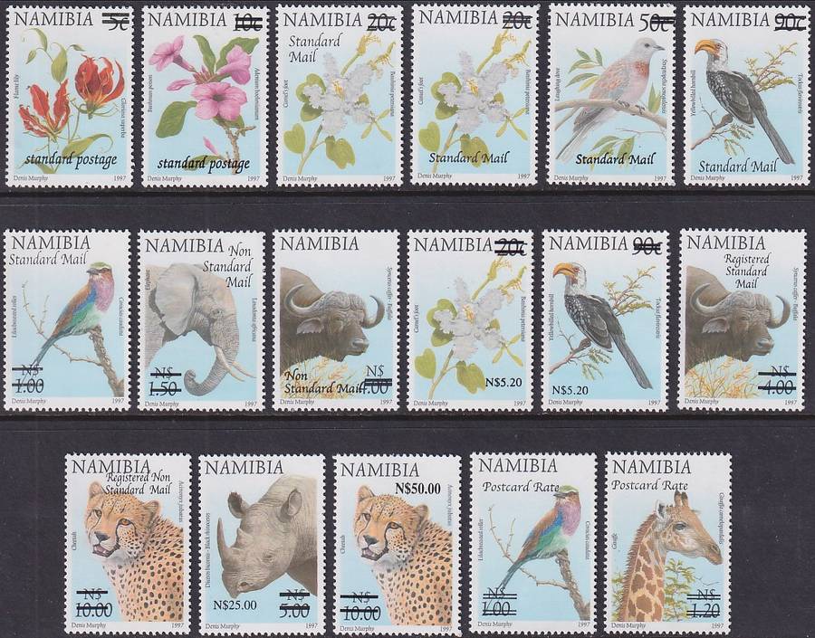 NAMIBIA collection of surcharges on 1997 3rd Definitive Series, SACC 499 included (all MNH cat R3500)
