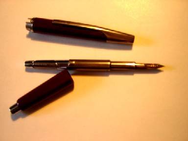 This Namiki / Pilot Fountain pen is of the 'Vanishing Point' series. I have been informed that it was produced in about 1980, but I have not confirmed this.