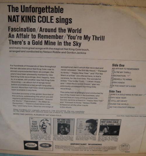 NAT KING COLE SINGS THE GREAT SONGS LP GOOD CONDITION