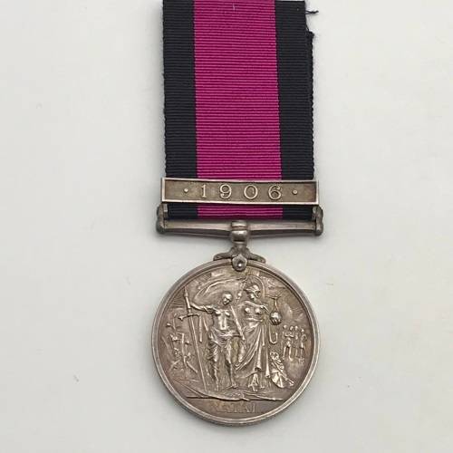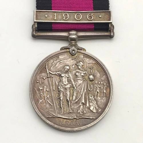 Note: This is the only British campaign medal not awarded to any British troops. The Natal Native Rebellion Medal was a South African campaign medal. It was issued for the service in the Bambatha Rebellion in Natal in 1906 and those who served for fifty days or longer qualified for the 1906 clasp with medal.