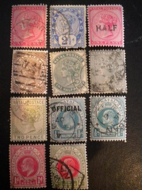 Up for aution is a lot of 11 NATAL stamps.