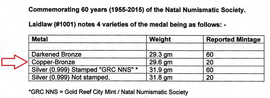 Natal Numismatic Society Diamond Jubilee (Copper-Bronze)