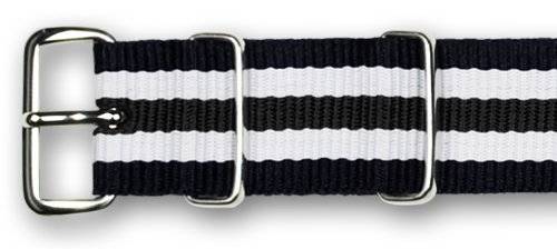 NATO Ballistic Nylon Watch Band - Black with White stripe - 20mm