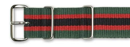 NATO Ballistic Nylon Watch Band - Dark Green with Red & Black stripes - 20mm
