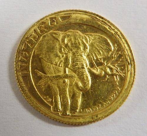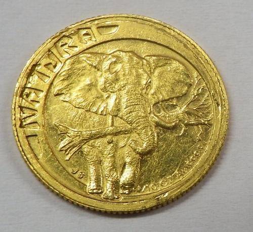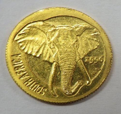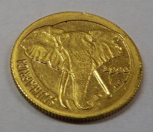 Natura Elephant Series 1/10 Oz Gold Coin - 1996 Elephant carrying an uprooted tree - as per photo