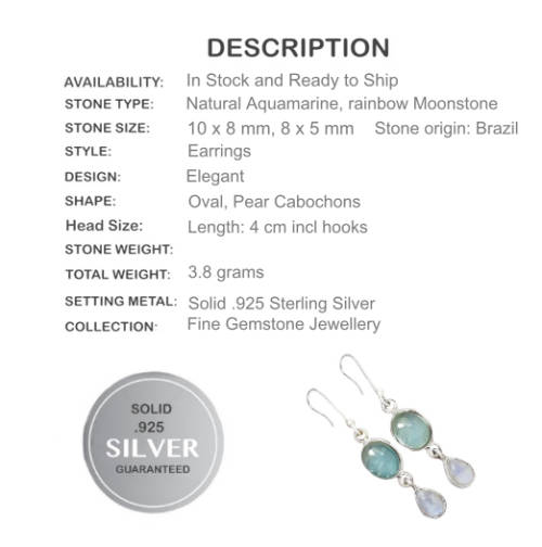 Natural Aquamarine , Rainbow Moonstone Gemstone Solid .925 Sterling Silver Earrings Natural Aquamarine , Rainbow Moonstone Gemstone Solid .925 Sterling Silver Earrings Natural Aquamarine , Rainbow Moonstone Gemstone Solid .925 Sterling Silver Earrings