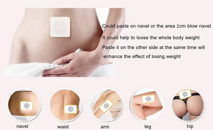 Package weight: 0.03 kg Features: - Natural Chinese herbal material slimming patch, helps to fat decomposition and discharge, promote toxins, improve constipation and sleeping - There is a magnetic stone in the slimming patch with magnetic therapy, improving blood and lymph circulation - Paste it on navel for before sleeping, about 8 hours per time, once a day - Do not use it during menstruation
