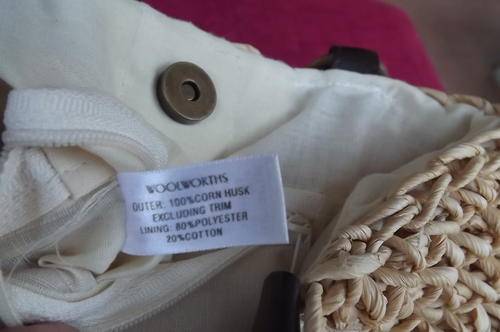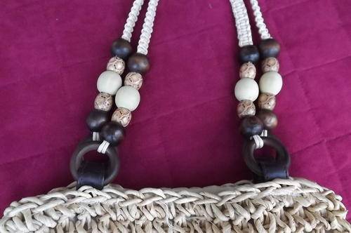 Natural Colour Rattan Bag with Lining and Storing Compartments inside - 33x37cm - as new