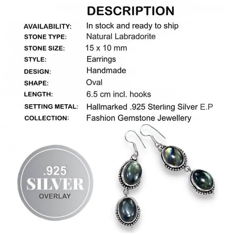 NATURAL BLUE FIRE LABRADORITE GEMSTONE DROP DANGLE EARRINGS