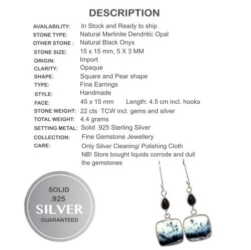 HANDMADE NATURAL MERLINITE DENDRITIC OPAL & BLACK ONYX